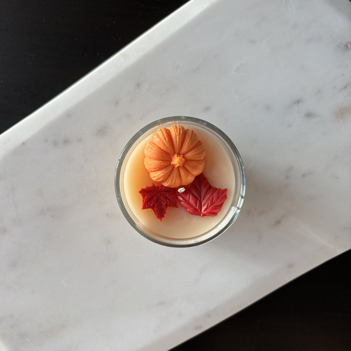 Meet your slice of comfort. It opens with silky pumpkin purée and a warm pie-crust accord. In the heart, cinnamon, clove buds, and ginger root swirl like fresh-baked spice. It settles into a cozy base of cinnamon leaf and vanilla sugar—soft, toasty, and irresistibly nostalgic. Light it for instant pumpkin-pie vibes, no oven required.